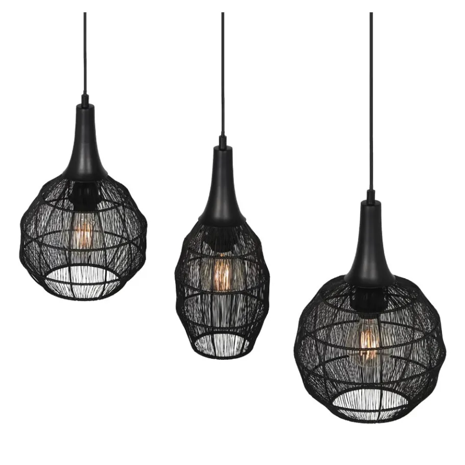 The SORAYA pendant light fascinates with its impressive wire mesh and creates a unique interplay of light and shadow that is reminiscent of the splendour of 1001 Nights. Its airy, elegant character adds a touch of oriental flair to any dining or living area. The matt black colour scheme underlines the exotic charm and sets stylish accents. The use of LED light sources is recommended for energy-saving lighting. These are an ideal alternative to conventional halogen light sources and offer high light quality and energy savings of up to 80%. With LED light sources, you also benefit from a long service life and low heat generation while protecting the environment.