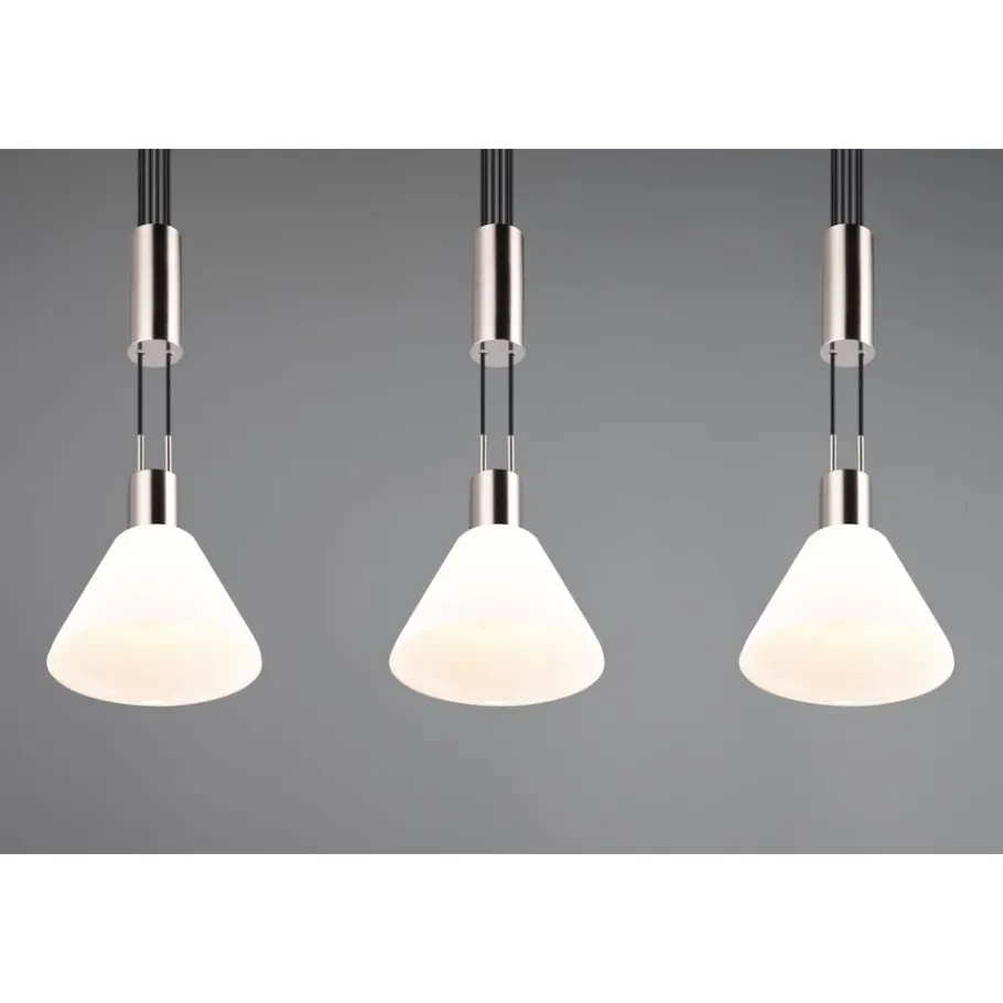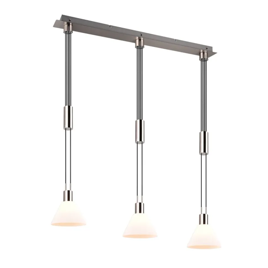 De tweelichts STANLEY hanglamp zet bijzondere lichtaccenten in je woonkamer. Het kleurenschema en het ontwerp van het glas creëren een magische flair en een elegant lichtspel boven je eet- of woonkamertafel. De in hoogte verstelbare elementen zorgen voor een flexibele lichtverdeling naar wens en ronden de sfeer perfect af. Het metaal in mat nikkel en de witte glazen kap stralen klassieke finesse uit in je woonkamer. Het gebruik van LED lichtbronnen wordt aanbevolen voor energiebesparende verlichting. Deze vormen een ideaal alternatief voor conventionele halogeenlichtbronnen en bieden een hoge lichtkwaliteit en energiebesparingen tot 80%. Met LED lichtbronnen profiteert u ook van een lange levensduur en een lage warmteontwikkeling, terwijl het milieu wordt beschermd.