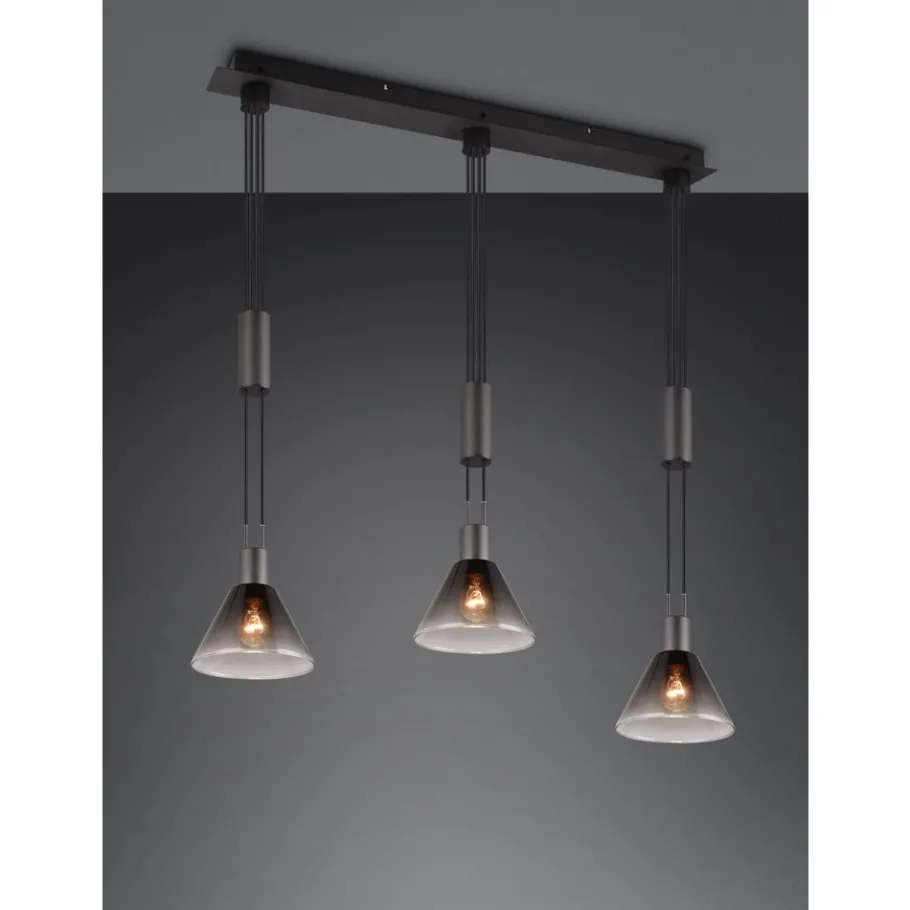 De tweelichts STANLEY hanglamp zet bijzondere lichtaccenten in je woonkamer. Het kleurenschema en het ontwerp van het glas creëren een magische flair en een elegant lichtspel boven je eet- of woonkamertafel. De in hoogte verstelbare elementen zorgen voor een flexibele lichtverdeling naar wens en ronden de sfeer perfect af. Het matzwarte metaal en de rookkleurige glazen kap stralen koelte en moderniteit uit in je woonkamer. Het gebruik van LED lichtbronnen wordt aanbevolen voor energiebesparende verlichting. Deze vormen een ideaal alternatief voor conventionele halogeenlichtbronnen en bieden een hoge lichtkwaliteit en energiebesparingen tot 80%. Met LED lichtbronnen profiteert u ook van een lange levensduur en een lage warmteontwikkeling, terwijl het milieu wordt beschermd.