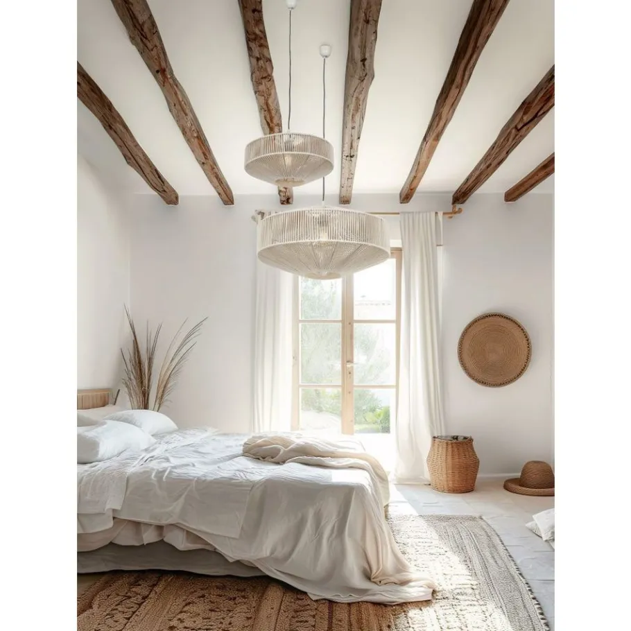 De SVEA hanglamp combineert de boho-look met natuurlijke lichtheid en brengt een stijlvolle flair in je kamers. Het zorgvuldig geweven katoenen ontwerp zorgt niet alleen voor een elegante look, maar creëert ook een fascinerend spel van licht en schaduw dat elke kamer baadt in een gezellige en levendige sfeer. De SVEA hanglamp is ideaal voor liefhebbers van natuurlijke materialen en tijdloze ontwerpen en maakt indruk met haar rotanlook en zachte beige en zandkleuren. Deze lamp past harmonieus in elk interieur en creëert een warme, uitnodigende omgeving – perfect voor een stijlvolle, moderne leefruimte. Het gebruik van LED lichtbronnen wordt aanbevolen voor energiebesparende verlichting. Deze vormen een ideaal alternatief voor conventionele halogeenlichtbronnen en bieden een hoge lichtkwaliteit en energiebesparingen tot 80%. Met LED lichtbronnen profiteert u ook van een lange levensduur en een lage warmteontwikkeling, terwijl het milieu wordt beschermd.