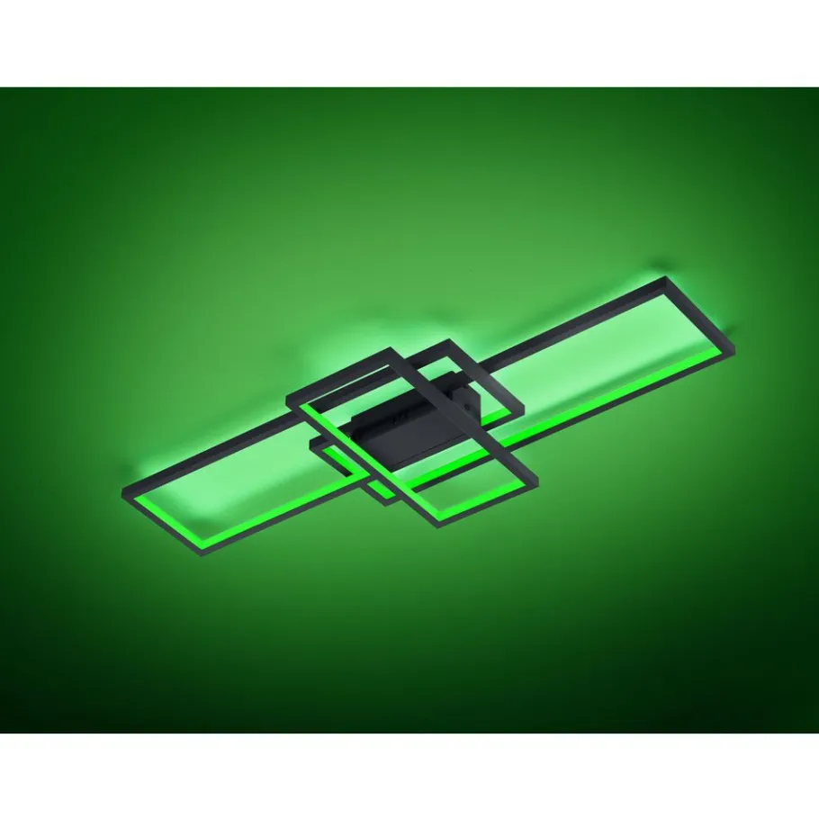 Get your light connected! De plafondlamp THIAGO levert een innovatief, flexibel en slim lichtdesign. WiZ-lampen bieden een ongelooflijk kleurenspectrum van 16 miljoen kleuren en 64.000 wittinten. Laat u wekken door zacht zonnelicht, begin boordevol energie aan de dag, ontspan u met rustgevend licht of maak van de nacht dag en dat alles helemaal eenvoudig via app. In tegenstelling tot andere Smart Home-providers is bij WiZ-lampen geen extra gateway nodig, zodat alle lampen volledig flexibel via een mobiel eindapparaat bediend kunnen worden. Bovendien kunnen de lampen gecombineerd worden met Alexa of Google Home, zodat de bediening via spraakassistent mogelijk is. Maar ook met de meegeleverde afstandsbediening of via de lichtschakelaar kunnen verschillende lichtprogramma’s en instellingen geselecteerd worden. Nog een voordeel is de flexibiliteit bij het gebruik: Zo kunnen de WiZ-lampen door meerdere gebruikers bediend, aan verschillende ruimtes of locaties toegekend en van overal bestuurd worden. De combinatie uit drie filigrane rechthoeken leidt tot een moderne lamp voor de woonzone of hal. De plafondlamp is in antraciet en laat zich probleemloos integreren in voor handen zijnde kleurconcepten. Daarnaast beschikt de lamp over een moderne ledtechnologie die zich onderscheidt met een hoge lichtkwaliteit en energie-efficiëntie. In vergelijking met gewone halogeenlampen kan tot 80% bespaard worden op de energiekosten. Bovendien hebben ledlampen een lange levensduur, produceren minder warmte en zijn milieuvriendelijk.