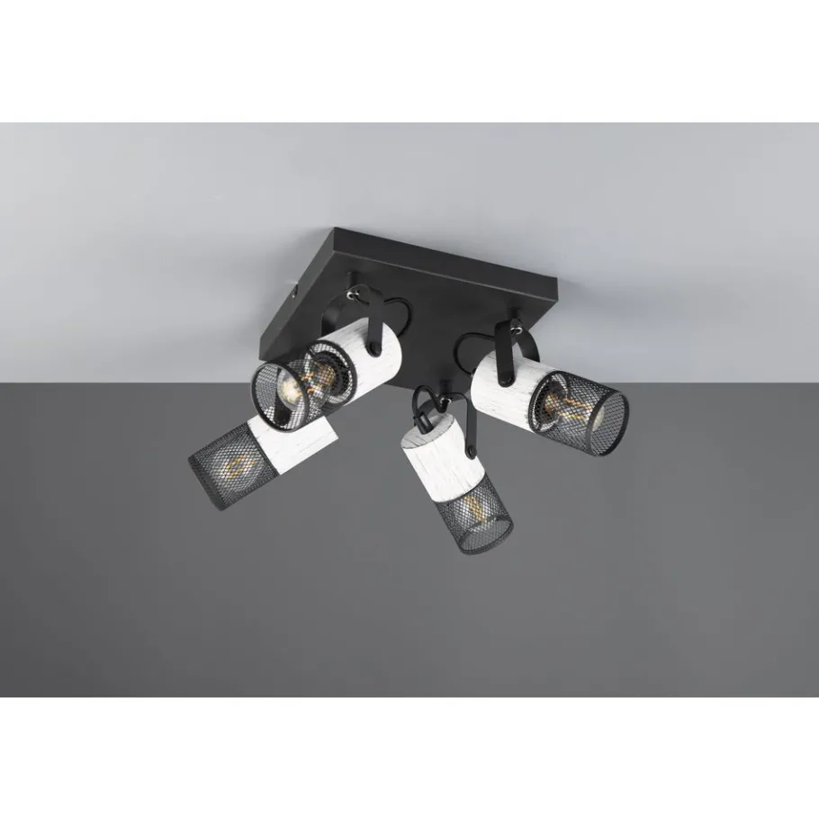 De moderne mix van metaal en hout ziet er tijdloos uit en is absoluut on trend. De combinatie met natuurlijke materialen is een integraal onderdeel geworden van moderne woonruimtes en creëert ook een gezellige sfeer. De 4-spots TOSH is daarom de ideale keuze voor het plaatsen van individuele lichtaccenten in de gang, woonkamer of slaapkamer. De spot kan individueel worden ingesteld voor gerichte accentverlichting. Zwart metaal en houten elementen in antiek wit zijn terug te vinden in moderne en minimalistische inrichtingsstijlen. Het gebruik van LED lichtbronnen wordt aanbevolen voor energiebesparende verlichting. Deze vormen een ideaal alternatief voor conventionele halogeenlichtbronnen en bieden een hoge lichtkwaliteit en energiebesparingen tot 80%. Met LED lichtbronnen profiteert u ook van een lange levensduur en een lage warmteontwikkeling, terwijl het milieu wordt beschermd.