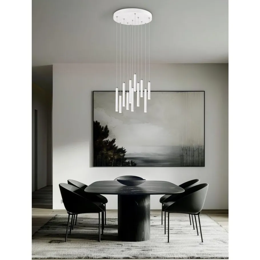 Het stijlvolle design van de hanglamp maakt van de TUBULAR een absolute blikvanger. Als doelgerichte verlichting boven de eettafel komt de lamp bijzonder goed tot uiting en zorgt voor optimale lichtomstandigheden. Via een geïntegreerde SWITCH-dimmer kan de helderheid in niveaus afgestemd worden van 100% naar 50% en 25% door middel van een gewone lichtschakelaar. De 11-vlammige hanglamp heeft een maximale hoogte van 150 cm. De lichtbronnen hebben een variabele lengte van 22 tot 36 cm en kunnen onafhankelijk van elkaar ingekort worden, zodat er een individueel uitzicht ontstaat. De hanglamp in mat wit laat zich uitstekend integreren in moderne woonruimtes en zorgt voor een aangename sfeer. Daarnaast beschikt de lamp over een moderne ledtechnologie die zich onderscheidt met een hoge lichtkwaliteit en energie-efficiëntie. In vergelijking met gewone halogeenlampen kan tot 80% bespaard worden op de energiekosten. Bovendien hebben ledlampen een lange levensduur, produceren minder warmte en zijn milieuvriendelijk.