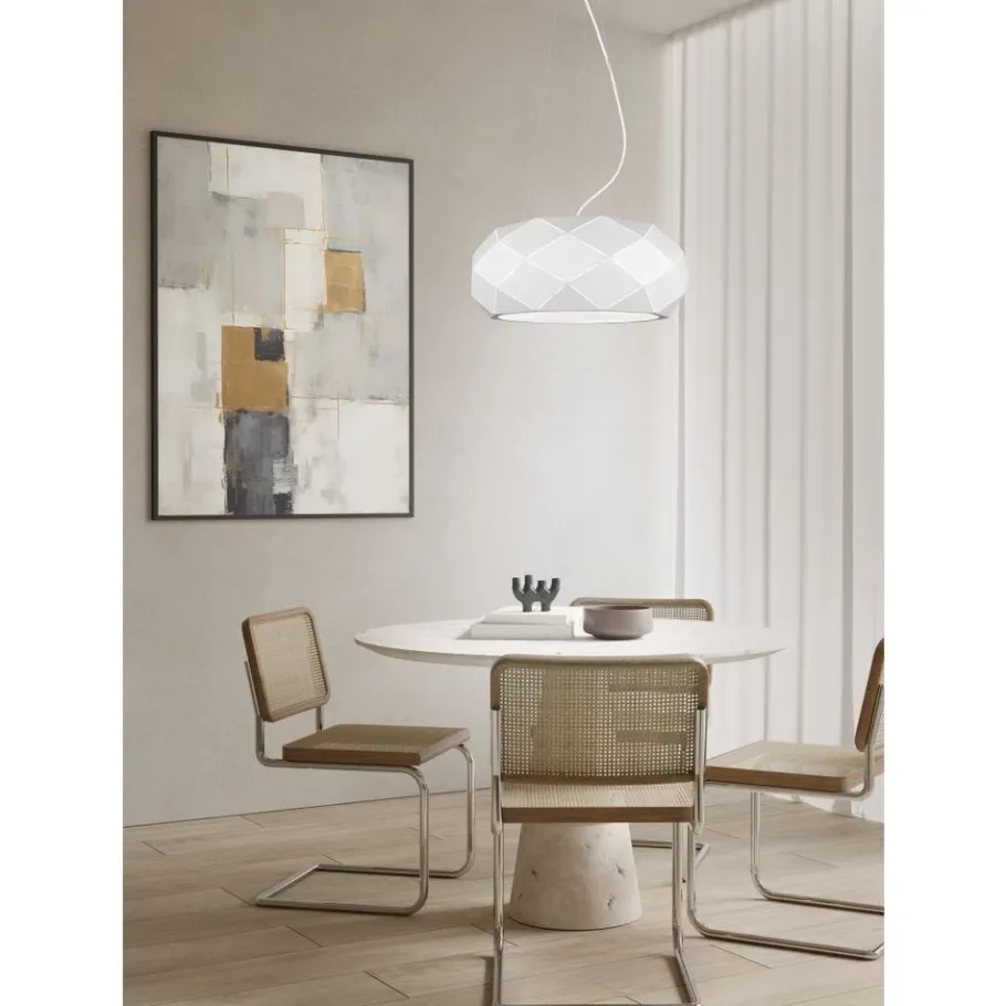 De moderne ZANDOR hanglamp is een echte blikvanger in elke woonkamer. Het meeste licht ontsnapt naar boven en naar beneden. Het mooie patroon van het armatuur laat ook hier wat licht ontsnappen. De ZANDOR wandlamp is daarom bijzonder geschikt voor aanvullende of accentverlichting, omdat de focus natuurlijk niet ligt op een heldere verlichting, maar op een sfeervol effect. De lamp heeft een diameter van 50 cm en een hoogte van 18/150 cm. Het armatuur is gemaakt van mat wit metaal. Daarnaast beschikt de lamp over een moderne ledtechnologie die zich onderscheidt met een hoge lichtkwaliteit en energie-efficiëntie. In vergelijking met gewone halogeenlampen kan tot 80% bespaard worden op de energiekosten. Bovendien hebben ledlampen een lange levensduur, produceren minder warmte en zijn milieuvriendelijk.