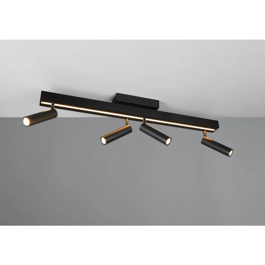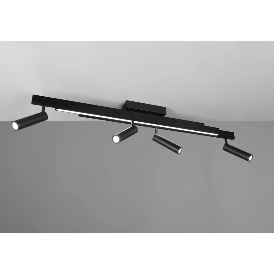 Veelzijdige verlichting in een stijlvol design – De plafondlamp ZENO maakt indruk met drie parallelle, langwerpige elementen die eenvoudig uit elkaar getrokken kunnen worden om het licht aan te passen aan jouw behoeften en de ruimte. Daarnaast bieden vier verplaatsbare spots nog meer opties voor een gericht lichtontwerp in je woonruimte. Met de meegeleverde afstandsbediening kun je de lichtkleur en helderheid eenvoudig op afstand regelen. Het matzwarte metaal geeft de lamp een elegante en moderne uitstraling. De armatuur is ook voorzien van moderne LED-technologie, die wordt gekenmerkt door een hoge lichtkwaliteit en energie-efficiëntie. Vergeleken met conventionele halogeenlichtbronnen kan tot 80% op de energiekosten worden bespaard. LED lichtbronnen hebben ook een lange levensduur, produceren minder warmte en beschermen het milieu.